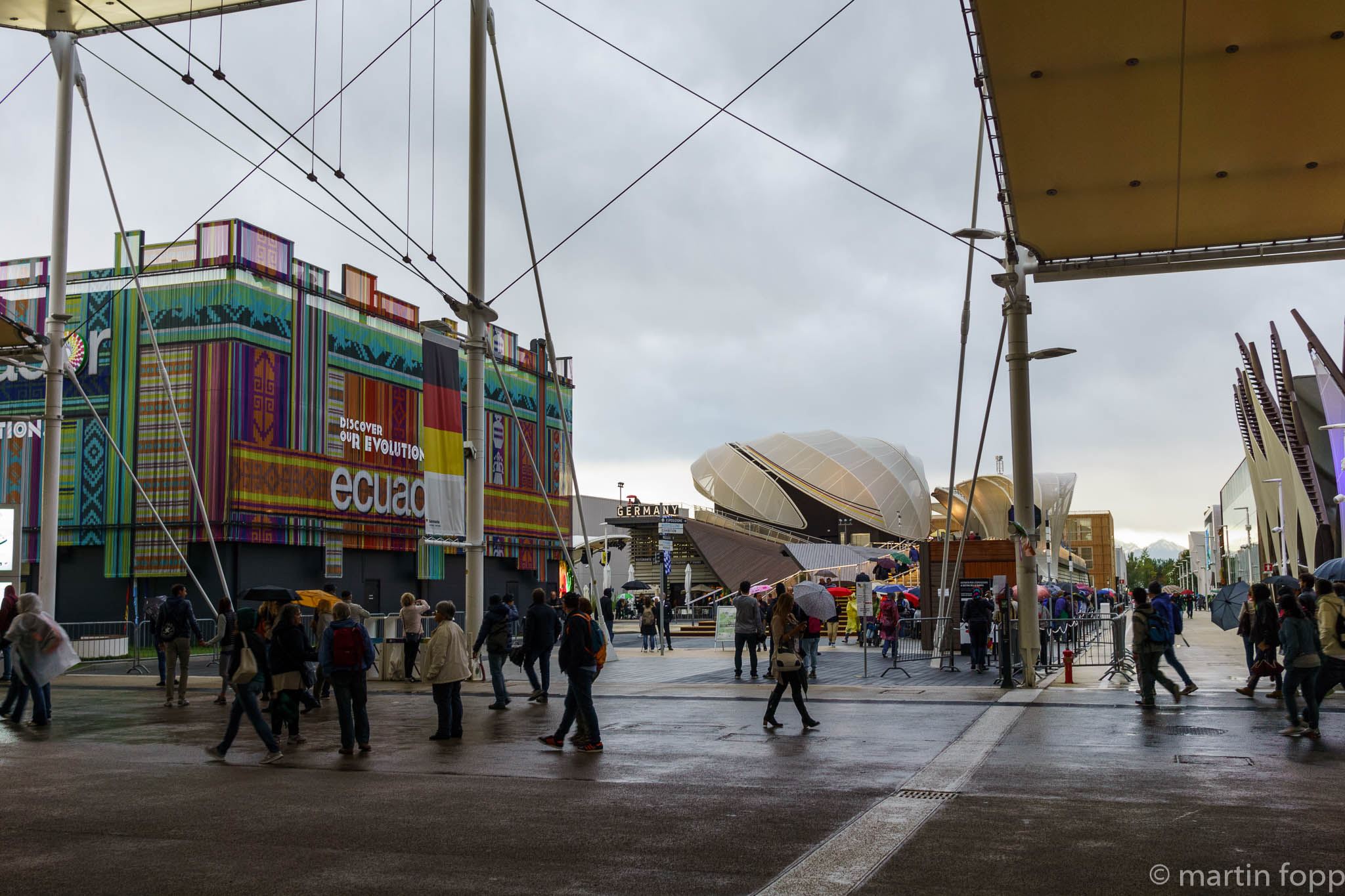 Martin Fopp Sat Jun 04 2016 23:05:46 GMT+0000 (Coordinated Universal Time) 1 min read Da die Expo für einmal so Nahe war, nutzten wir die Gelegenheit und machten einen Tagesauflug über den San Bernardino nach Mailand. Leider war das Wetter eher mässig, sprich meistens grau und nass. Was man vielen der sehr zahlreichen Besuchern anmerkte. Da wir nur einen Tag da waren, waren wir ein bisschen wählerisch punkto anstehen, aber die meisten Pavillons hatten interessante Sachen - nur schon die Architekturen. Interessant zu sehen war, dass bei einigen Pavillons es eher um Kunden, sei es Geschäfte oder Touristen, ging.