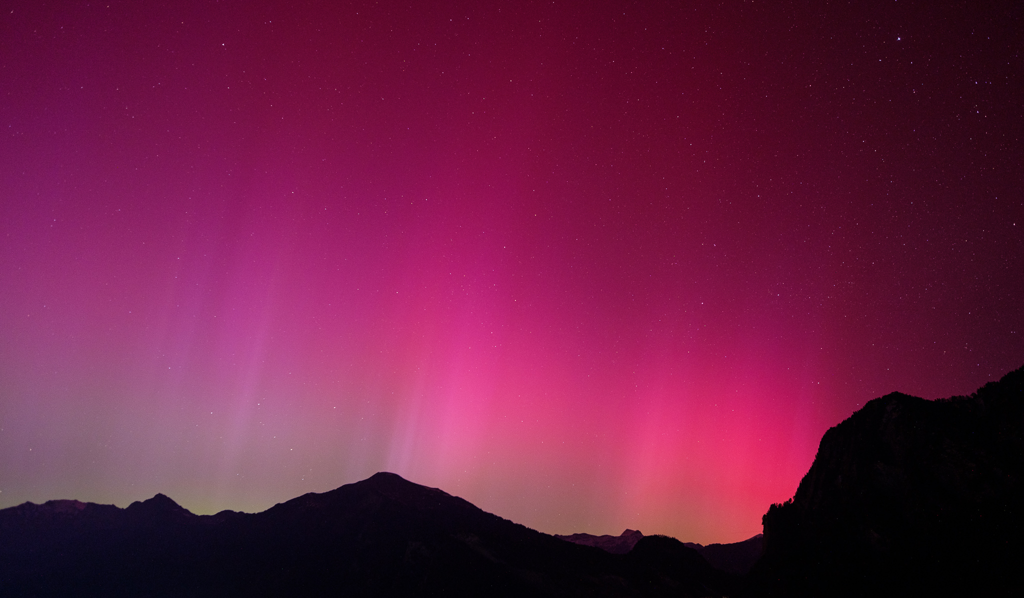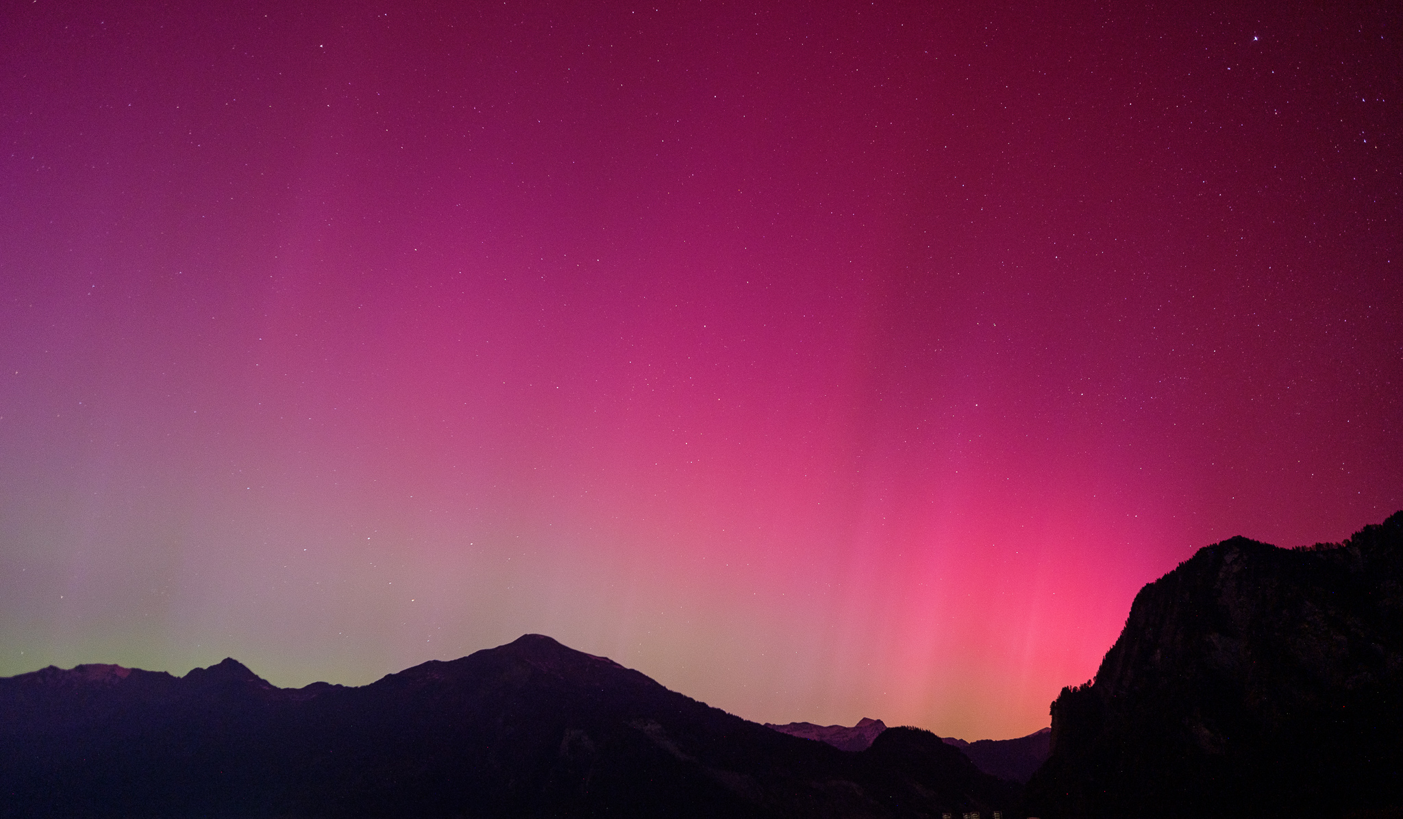 Wer hätte das gedacht, dank einem besonders starken Sonnensturm, waren Polarlichter vom Balkon aus in der Schweiz sichtbar. Somit musste ich für meine ersten Polarlichter in meinem Leben nicht mal in den hohen Norden reisen.